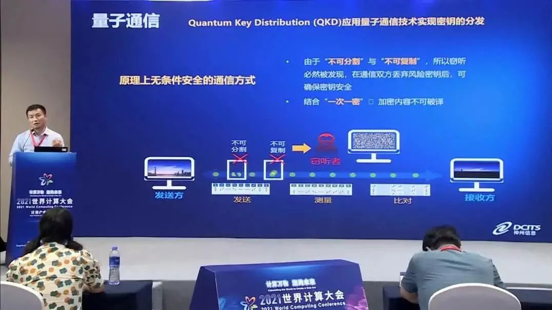 9月16日~18日,由湖南省人民政府、工业和信息化部联合主办“2021世界计算大会”在湖南长沙盛大举办。本届大会以“计算万物·湘约未来——计算产业新格局”为主题,聚焦“计算”与“数字”本质,围绕前沿技术、数据要素、人工智能、软硬件技术、信息安全、生态融合、新型基建、先进计算与先进制造等主题,为全球计算领域搭建一个专业化交流、高端化对接,共赢共享的国际合作平台。BB贝博艾弗森官网量子通信产品研发专家王玉龙出席前沿技术与新型计算主题峰会,并做题为《量子通信提升金融机构抗攻击能力》的演讲。